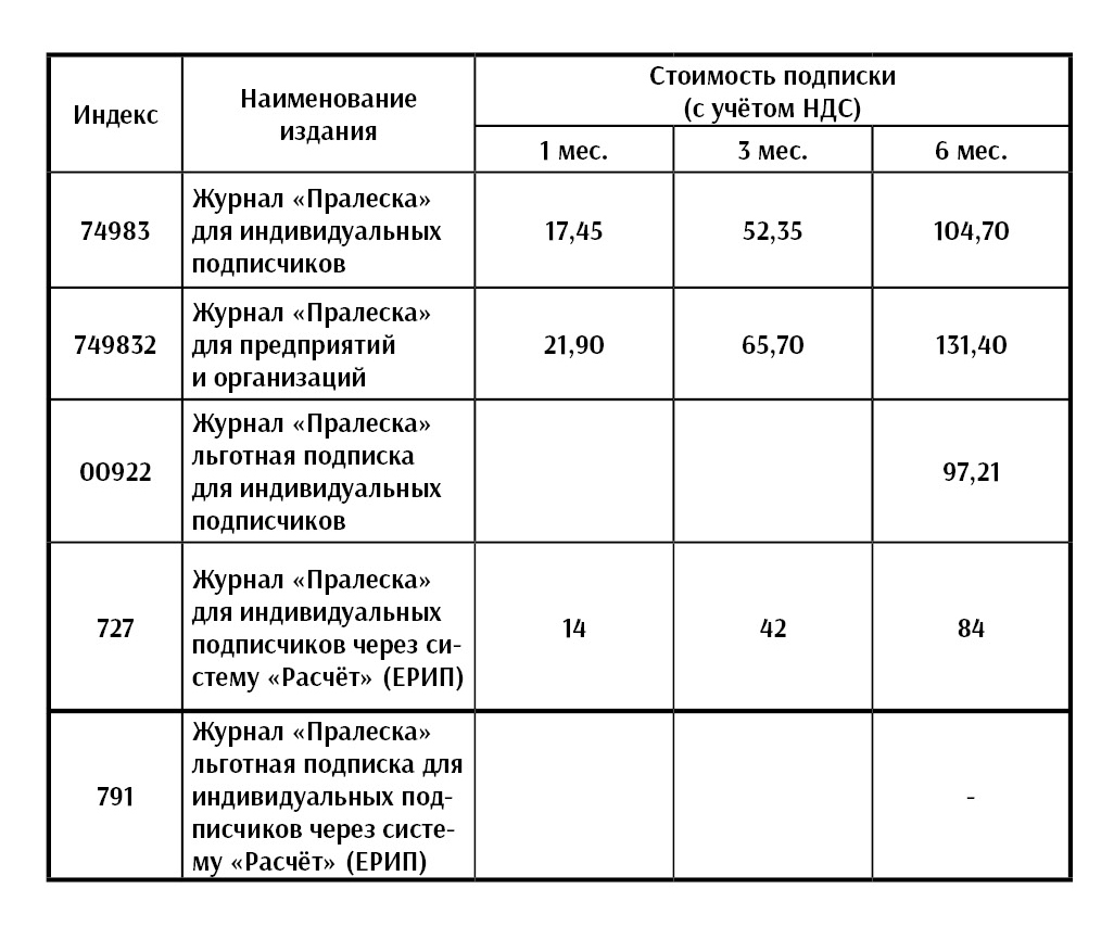 Стоимость подписки на журнал «Пралеска»