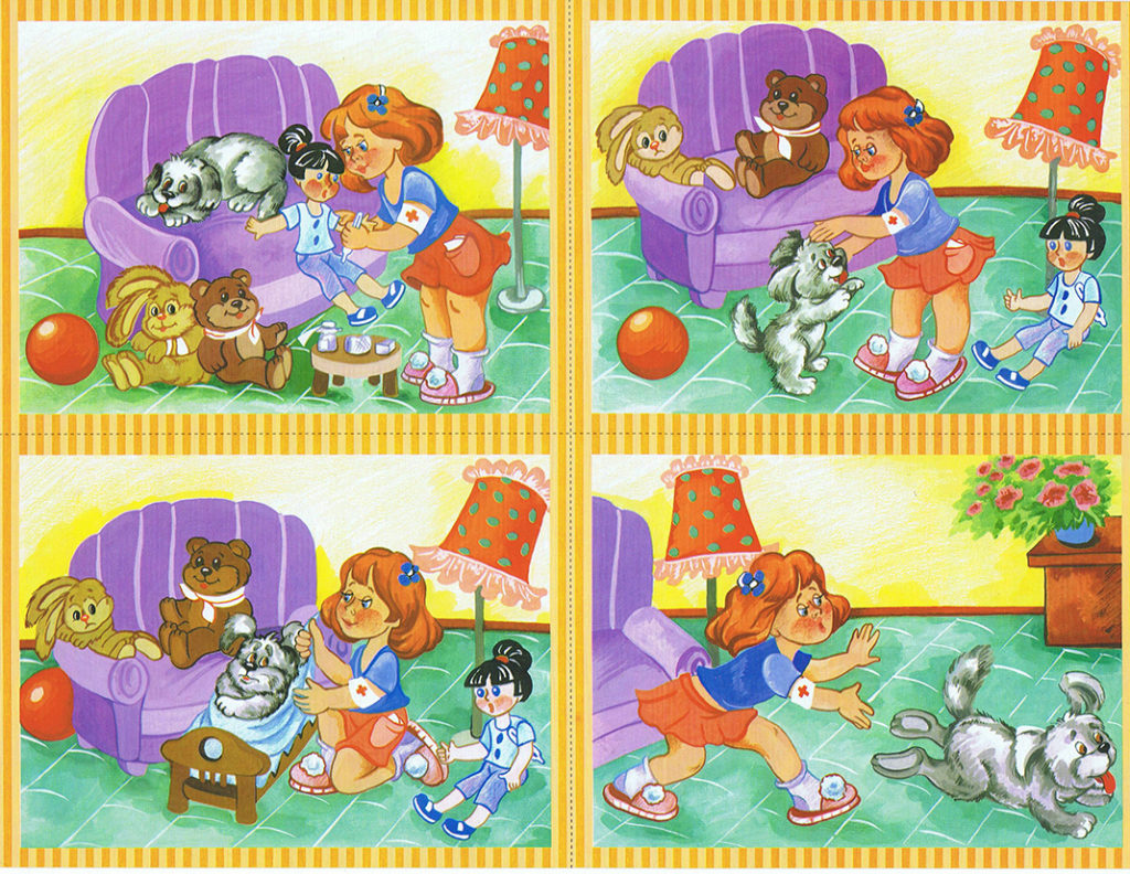 Ребёнку предлагается разложить картинки в правильной последовательности, составить по ним рассказ, назвать изображения со звуком [л].