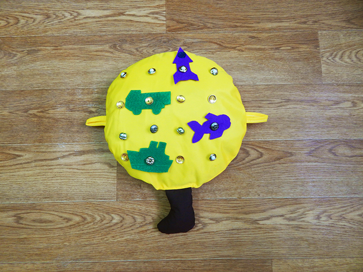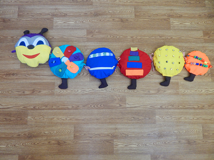 «Гусеница» представляет собой шесть разноцветных подушек из ткани, соединённых между собой ленточками. Первая подушка — «голова» гусеницы, а остальные — «туловище». Каждая из частей туловища имеет своё функциональное назначение: