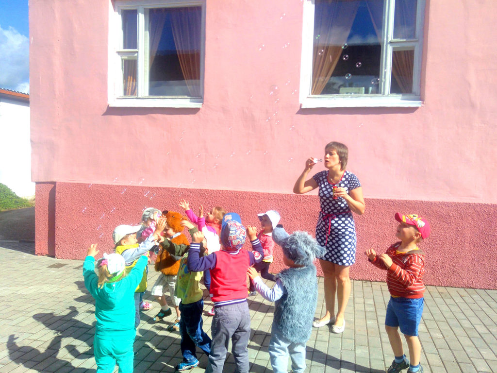 Воспитанники яслей-сада с удовольствием принимали участие в физкультурно-оздоровительных развлечениях, праздниках, досугах. Весело, увлекательно и познавательно провели встречи со сказочными персонажами. Для Феи Лето с её волшебным зонтиком ребята читали стихи на летнюю тематику, отгадывали загадки, играли и танцевали. Вместе с Незнайкой путешествовали на воздушном шаре на поляну игр, закрепляли правила дорожного движения, а с клоунессой Игринкой совершили незабываемое путешествие на необычном поезде. Побывав у ребят в гостях, Баба Яга усвоила правила дорожного движения, научилась отгадывать загадки, выполнять интеллектуальные задания. Весёлый Карлсон предлагал разнообразные эстафеты.