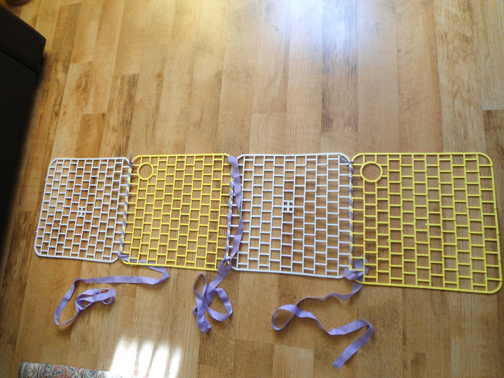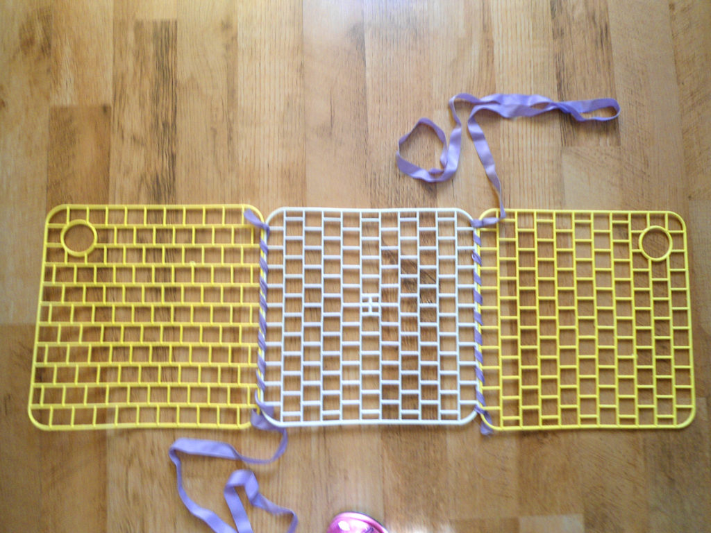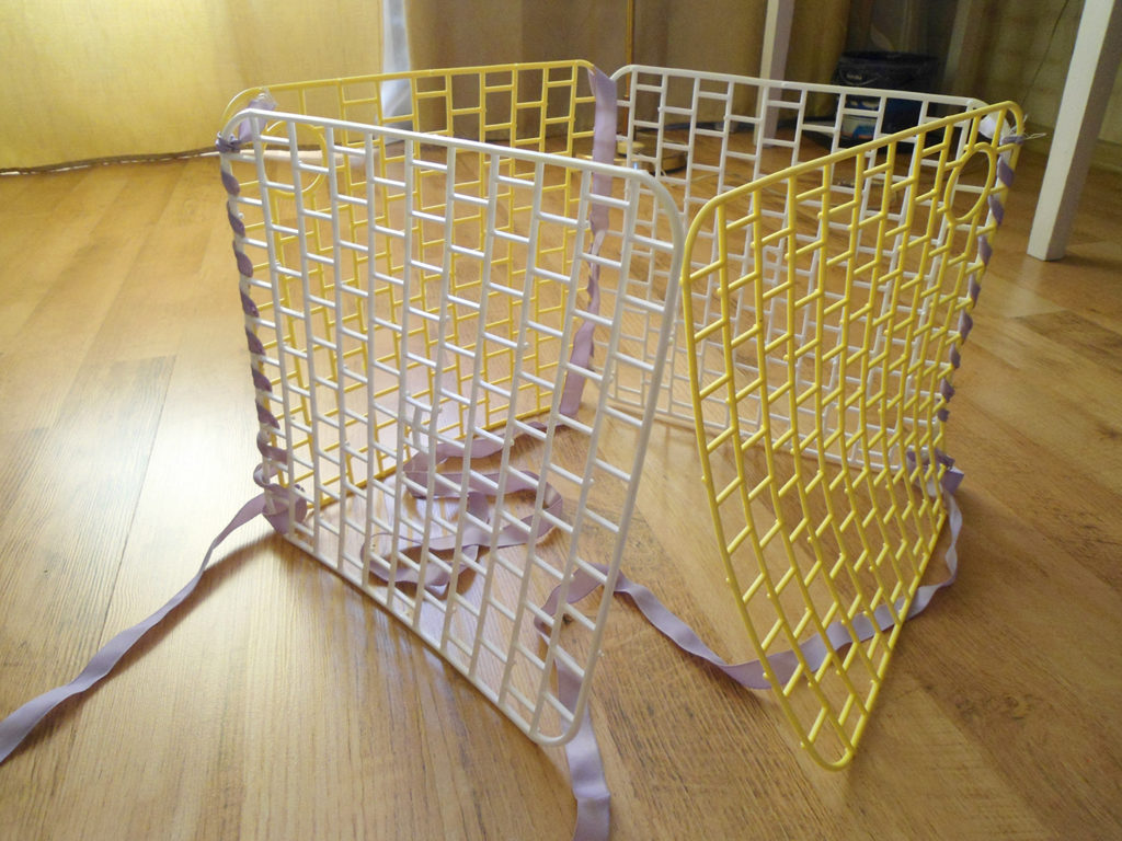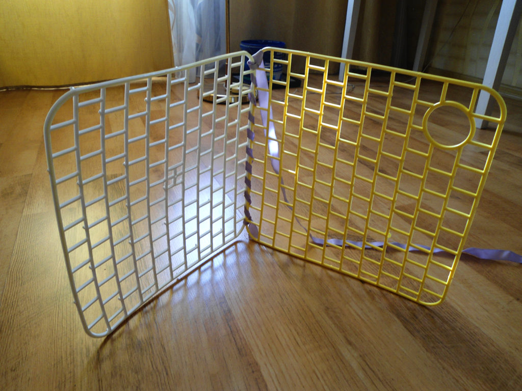 - Связать 2 решётки между собой с помощью ленты или нитками для вязания.