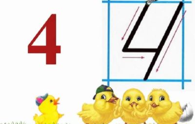 Вот четвёрка. Не сложна В написании она: Слева — угол впереди, Справа...