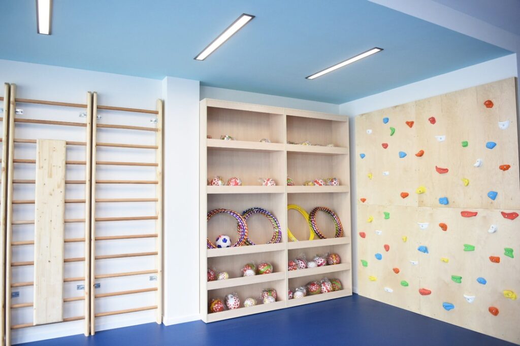 Территория учреждения дошкольного образования полностью огорожена, пройти внутрь можно через калитки с видеодомофонами. Вдоль здания расставлены камеры наблюдения и датчики, вся информация мгновенно поступает на пост охраны. Создана безбарьерная среда: детский сад оснащён современным лифтом и входами с уровня земли.