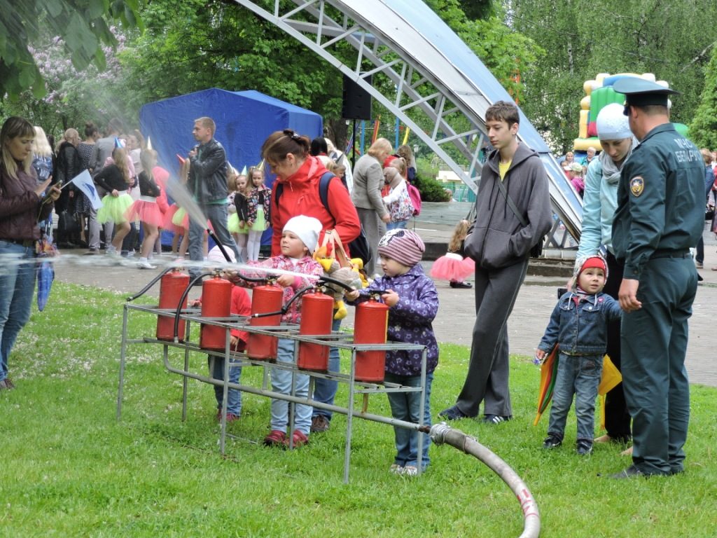 Могилёвские спасатели провели праздничное мероприятие в сквере 40-летия Победы. Кроме традиционных конкурсов были обустроены и обучающие площадки «Улица Безопасности», где родители вместе с ребятишками проверяли свои знания в области безопасности, разгадывали ребусы и загадки, находили безопасные выходы из предложенных ситуационных задач, примеряли одежду спасателей.