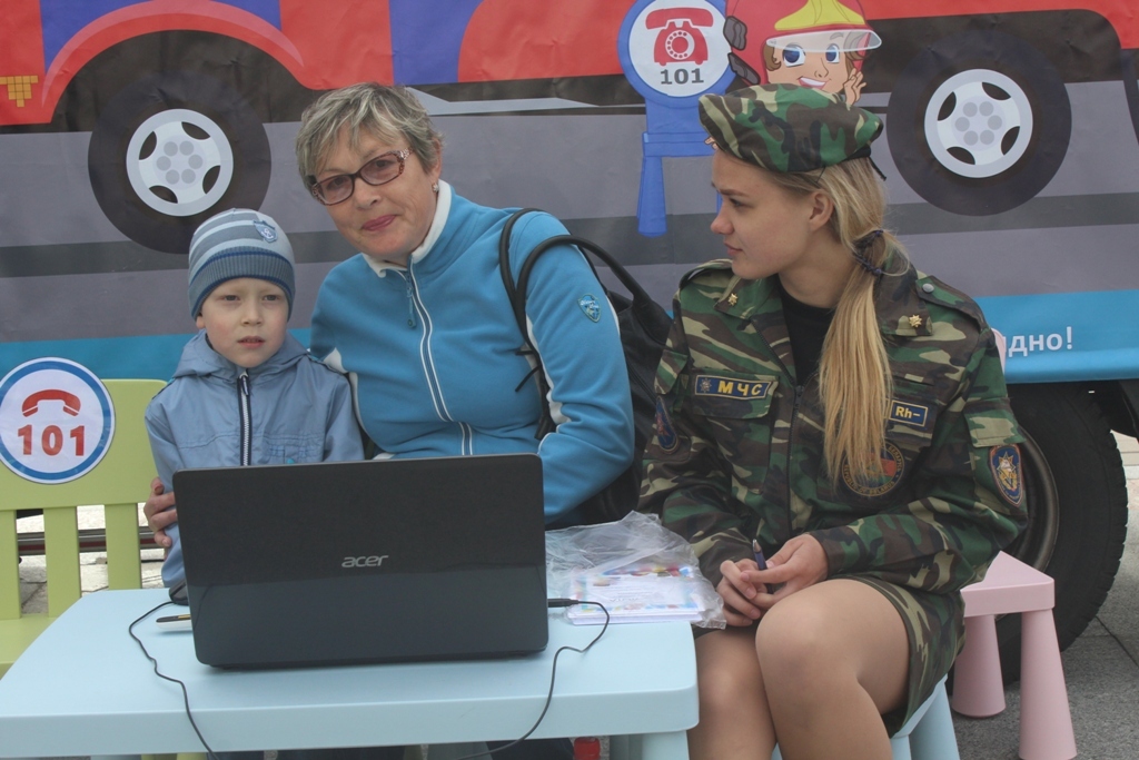 Детям и их родителям была предоставлена возможность почувствовать себя в роли спасателей и попасть по мишени из настоящего пожарного ствола, спасти человека из палатки, заполненной дымом, ответить на вопросы по ОБЖ, научиться делать непрямой массаж сердца, примерить боевую одежду пожарных-спасателей и узнать, зачем спасателям нужны мотоциклы. Кроме этого, у ребят была уникальная возможность познакомиться и поиграть с собаками кинологической службы, увидеть и даже потрогать многочисленное профессиональное оборудование пожарных и водолазов, покататься на машине-перевёртыше. А самые маленькие учились правильно вызывать спасателей, рисовали и участвовали в безопасных конкурсах.