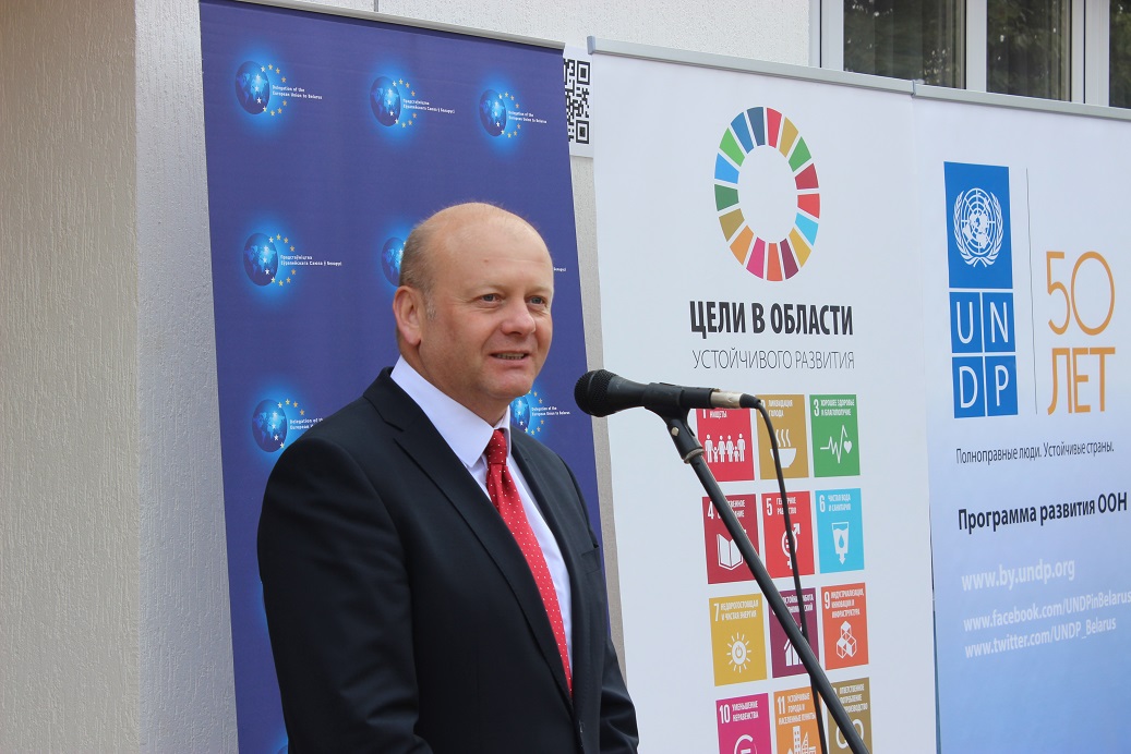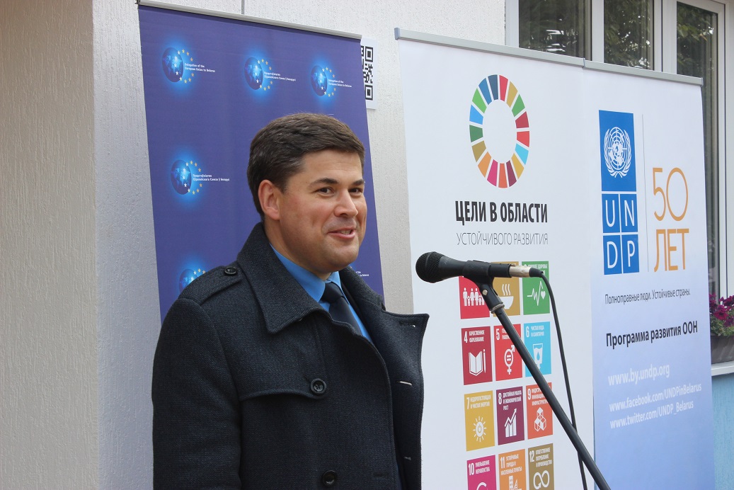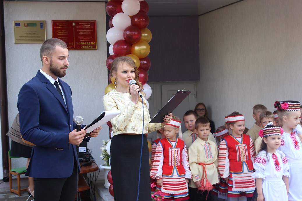 Торжественная церемония открытия прошла в яслях-саду № 6 г.Ошмяны Гродненской области, который является пилотным объектом проекта ЕС-ПРООН «Энергоэффективность в школах» и осуществлён при финансовой поддержке Европейского Союза, Гродненского областного исполнительного комитета и Ошмянского районного исполнительного комитета. Исполнителями проекта выступили Программа Развития ООН (ПРООН) в Республике Беларусь и Департамент по энергоэффективности. На ней присутствовали Игорь Чульба, координатор проектов ПРООН, Андрей Миненков, начальник отдела научно-технической политики и внешнеэкономических связей Департамента по энергоэффективности, Аудроне Урбонавичуте, заместитель руководителя операционного отдела проектов и программ Представительства ЕС в Беларуси, Мирослав Саросек, председатель Ошмянского районного исполнительного комитета, Александр Сонгин, начальник управления образования Гродненского областного исполнительного комитета.