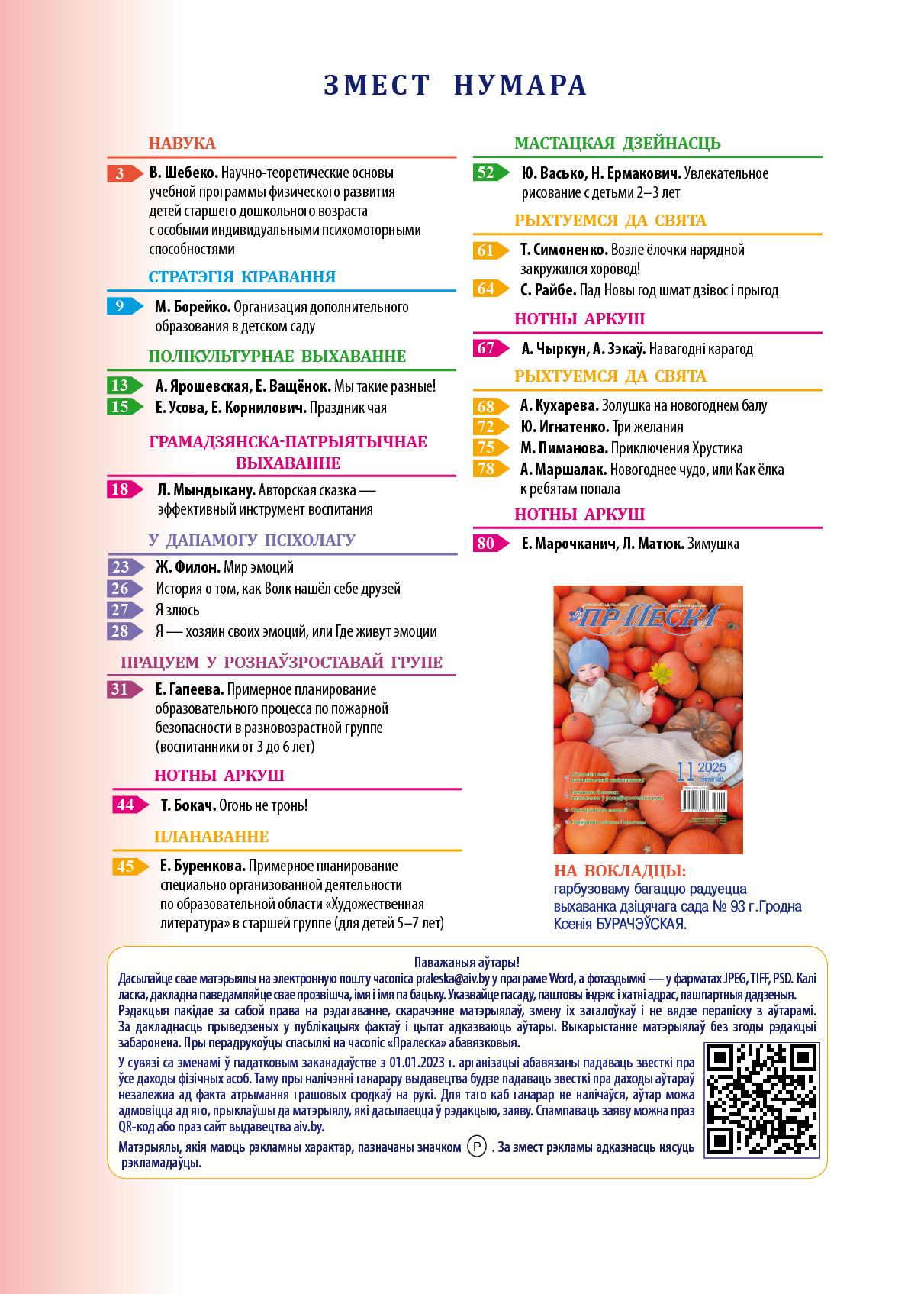 Р. Косенюк, Т. Соценко, В. Пашко, Н. Паталашко, О. Мукосей. Ситуационная задача как средство формирования основ функциональной грамотности у воспитанников учреждений дошкольного образования Ю. Скуратович. Организация игровых музыкально-познавательных ситуаций в процессе развития музыкального восприятия у детей от 2 до 4 лет.