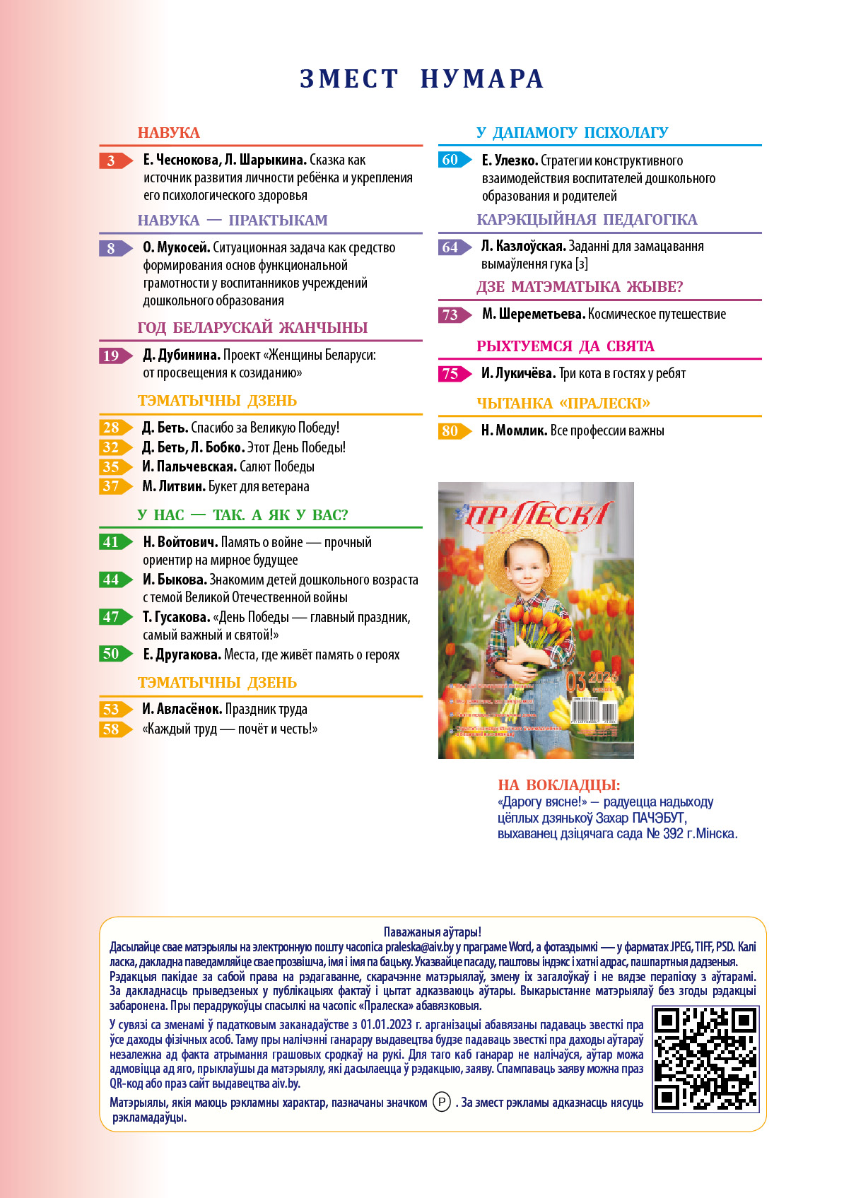На журнал «Пралеска» в Беларуси можно подписаться с любого времени, на любой срок. В Российской Федерации, Украине, Казахстане, Молдове, Литве, Латвии, Болгарии в соответствии с установленными в этих странах условиями подписки.